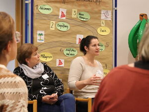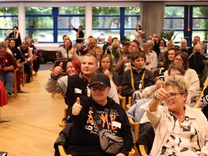 Der Herbst ist bestens geeignet für Wanderungen, Spaziergänge am Strand - oder Workshops am See. So war auch der Plan bei der Vorbereitung für die große Fahrt zu einem neuen Leitbild des AWO Bezirksverband Potsdam e.V. Am gestrigen Freitag trafen sich über 100 Mitarbeitende, Ehrenamtliche, Mitglieder in den Ortvereinen, Bewohner*innen und Nutzer*innen der AWO-Angebote auf der Halbinsel Hermannswerder, um über die künftige Ausrichtung, über Ziele und Aufträge des Wohlfahrtsverbandes zu diskutieren. „Unser Verband hat Werte, und die füllen Sie heute mit Inhalten, Herz und Verstand“, sagte die Vorstandsvorsitzende Angela Schweers zu Beginn des Leitbildworkshops. Gemeinsam mit der Präsidentin Marianne Rehda begrüßte sie die vielen Teilnehmer*innen.