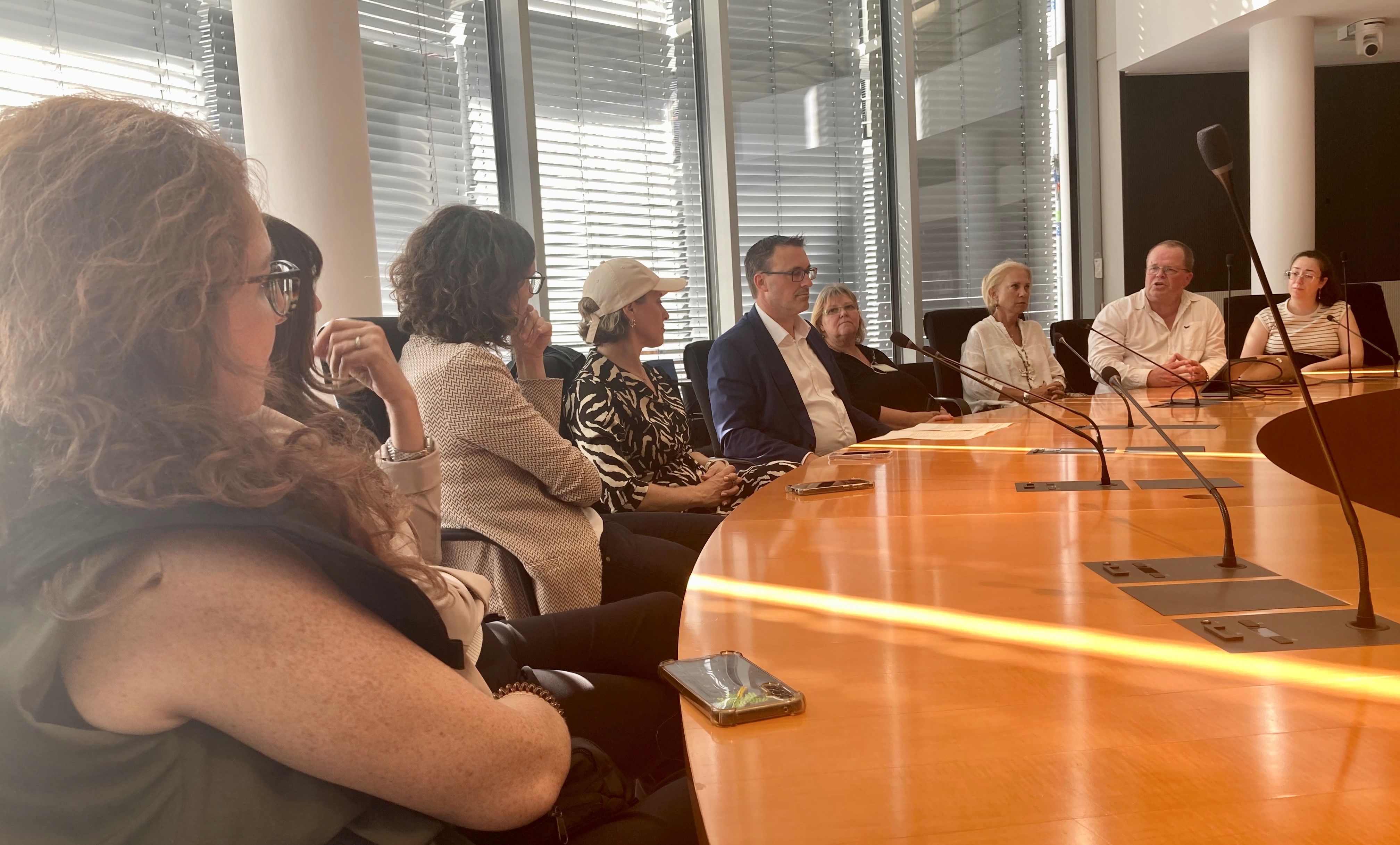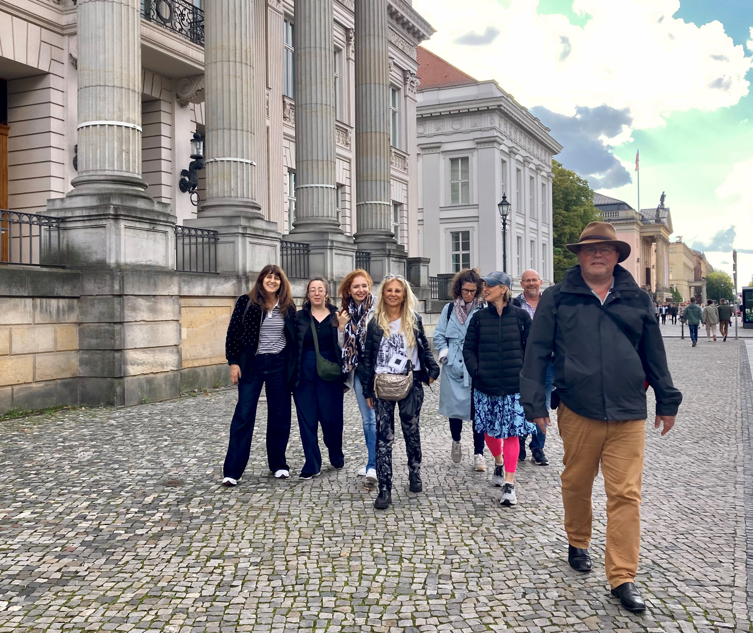Es waren intensive Tage mit vielen Eindrücken unserer Arbeit für die Menschen. Eine Woche lang besuchten israelische Fachkräfte der sozialen Arbeit die Einrichtungen des AWO Bezirksverband Potsdam e.V. und lernten viele Mitarbeiter*innen in Gesprächen kennen. Neben der AWO Suchtberatung in Teltow und einem anschließenden Empfang im AWO Haus zum Thema Ehrenamt besuchte die Delegation der israelischen Partnerorganisation Dialog – Institut für interkulturelle Begegnungen Zichron Yaacov den Standort Zum Kahleberg in der Potsdamer Waldstadt mit Angeboten für Jung und Alt. Außerdem traf sich die israelische Delegation mit den Mitarbeiter*innen des AWO CareleaverZentrums für junge Menschen zu einem Gespräch. Weitere Stationen waren die Flexiblen Hilfen der AWO Kinder- und Jugendhilfe Potsdam gGmbH, die Ehrenamtsbörse vor dem Brandenburger Tor mit einem Rundgang im Park Sanssouci und dem Besuch der Garnisonkirche sowie die Ausstellung "Enkelinnen" im Kunsthaus Potsdam. Auf dem Programm stand natürlich auch Berlin - verbunden mit einer Führung durch den Bundestag mit dem Parlamentarischem Staatssekretär im Bundesbauministerium, Sören Bartol, und einem Besuch des Holocaust-Mahnmals. Weitere Stationen waren die Straße Unter den Linden, die Staatsoper und der Bebelplatz, an dem die Bücherverbrennung 1933 stattfand.