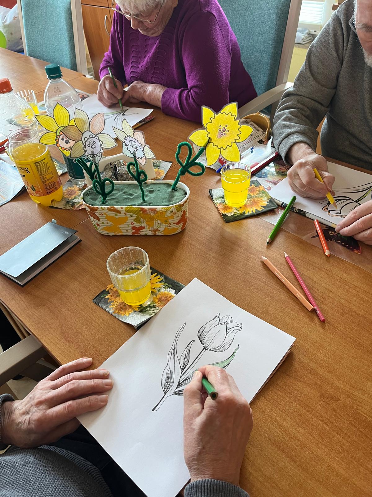 Endlich - die ersten warmen Sonnenstrahlen erwecken auch bei unseren Tagespflegebesuchern die Lust am neu dekorieren. Und so wurde Anfang der Woche fleißig gemalt, laminiert und die Tischdekoration von Winter auf Frühling umgestellt.