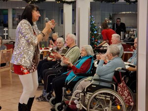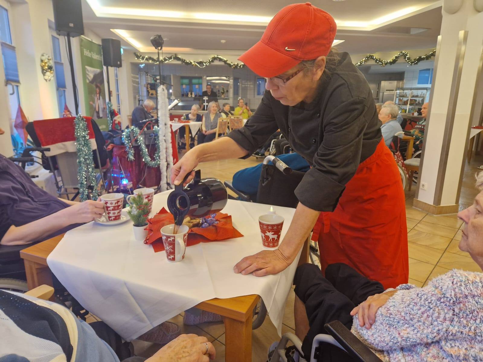 Stimmungsvoll verging der Nachmittag mit Liedern rund um Weihnachten wie im Flug. "Das gefällt mir sehr.", so unsere Helga. In diesen Kanon des Dankes stimmten die Bewohner ein, der so liebevoll vorbereitet und begleitet wurde vom Wichtelteam der Küche, den Betreuungswichteln und den Pflegewichteln.