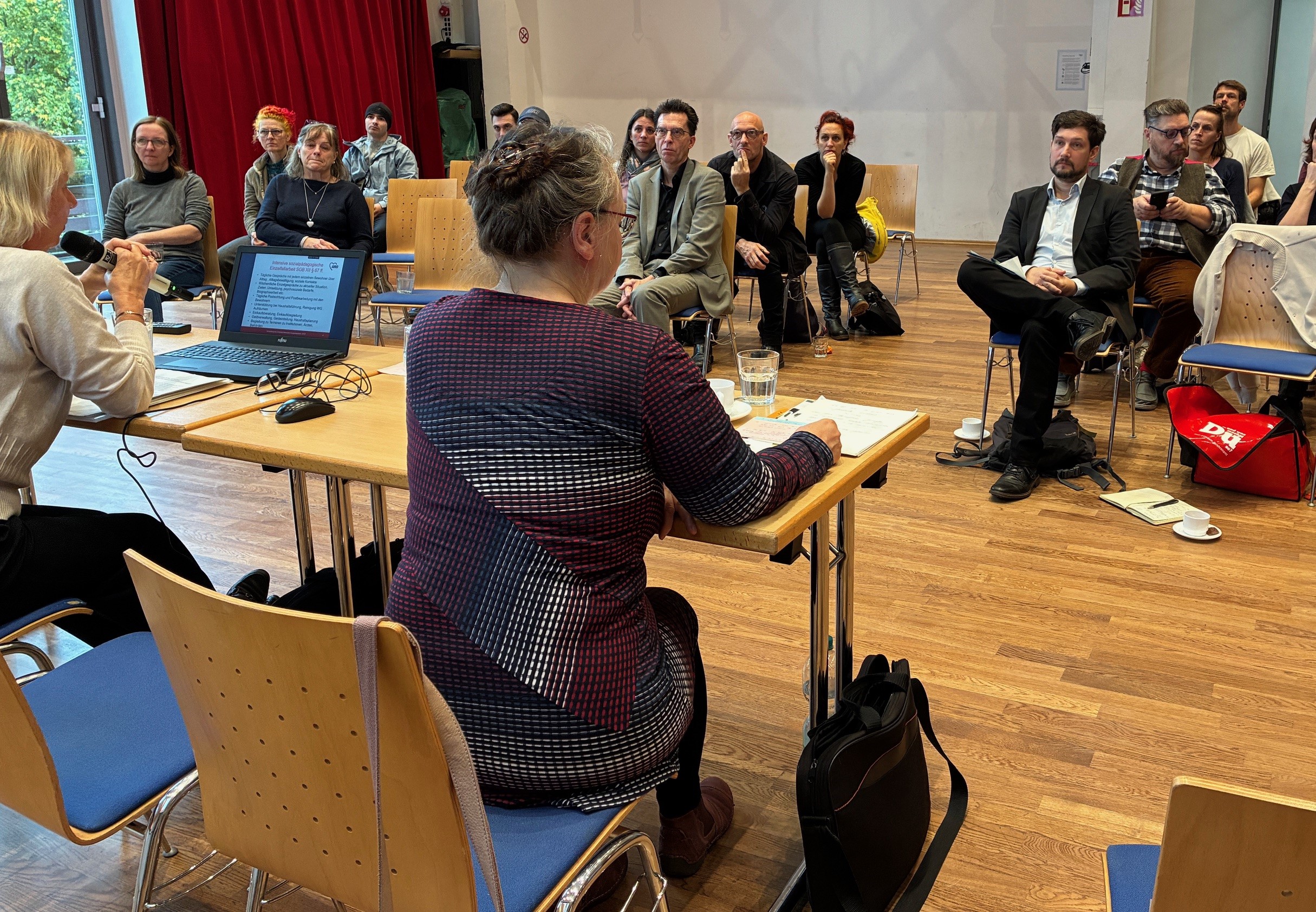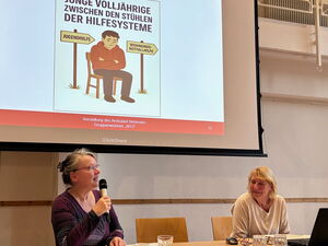 Ein Treffen zunächst nur auf der Verwaltungsebene werde noch in diesem Jahr stattfinden, kündigte Peter Svedja, Bereichsleiter der Potsdamer Wohnhilfe, am Ende der Veranstaltung an. Zuvor hatten die Fachtagenden – aktuelle und ehemalige Bewohner aus der W 13, Fachleute aus der Jugend- und Wohnungslosenhilfe sowie Ämter-Vertreter*innen – nach Inputs und Praxiserfahrungen im „Fishbowl“ die Schwachstellen im System diskutiert und überlegt, wie die Dinge im Sinne der jungen Menschen besser gestaltet werden können. Nach dem Kinder-Jugend-Stärkungsgesetz von 2021 eine pflichtige Aufgabe des Staates, wie Dr. Serge Embacher referierte. Demnach „erhalten Kinder und Jugendliche geeignete und notwendige Hilfe, wenn und so lange sie kein selbstständiges und eigenverantwortliches Leben führen können“.