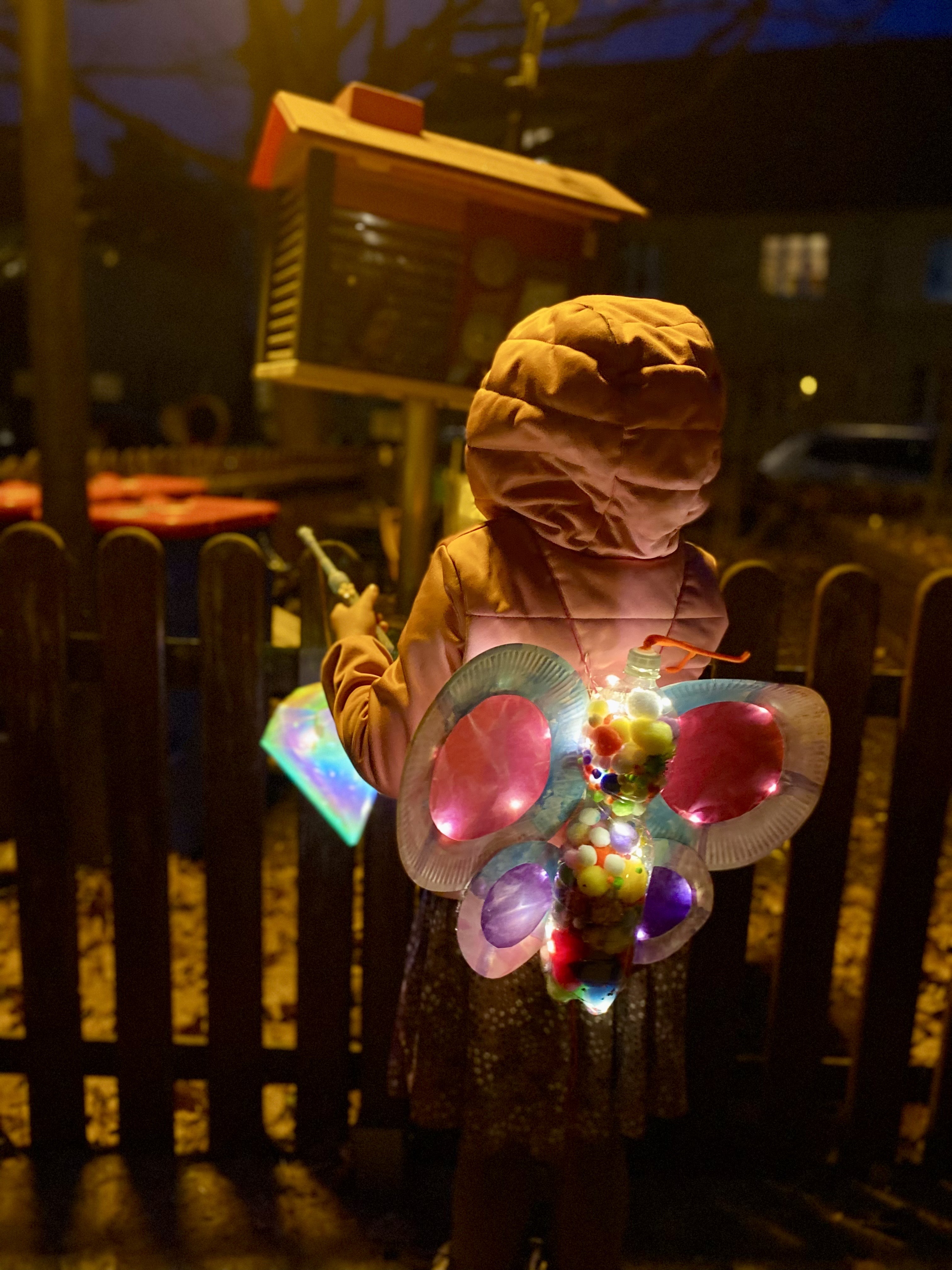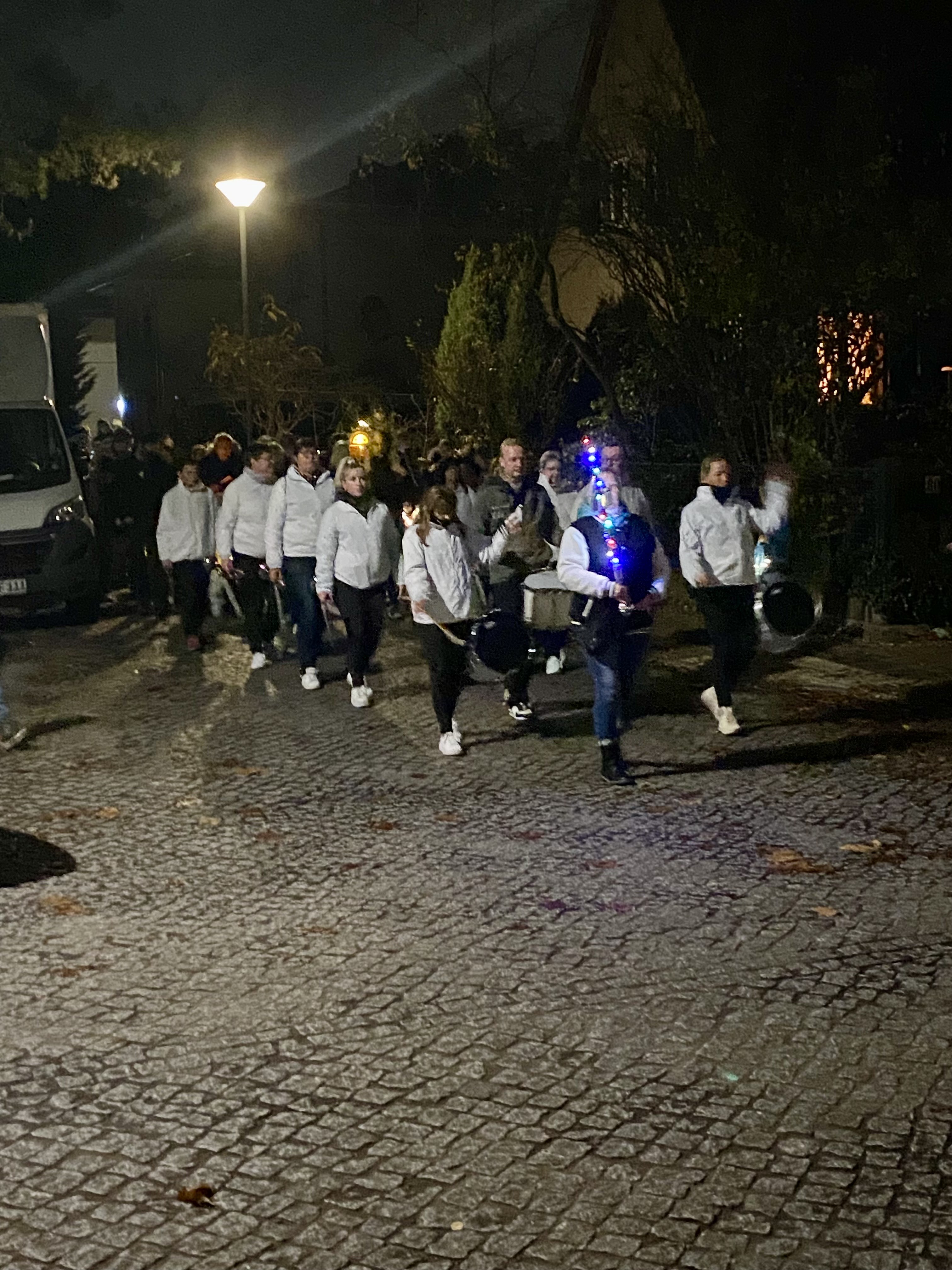 Auch in diesem Jahr fand wieder unser traditioneller Laternenumzug statt. Mit leuchtenden Laternen zogen die Kinder, Familien und Erzieher/innen durch die Straßen. Für eine festliche Atmosphäre sorgte der Fanfarenzug, der den Umzug musikalisch begleitete. Dank der polizeilichen Unterstützung verlief der Umzug sicher, sodass alle Teilnehmenden den Abend unbeschwert genießen konnten.