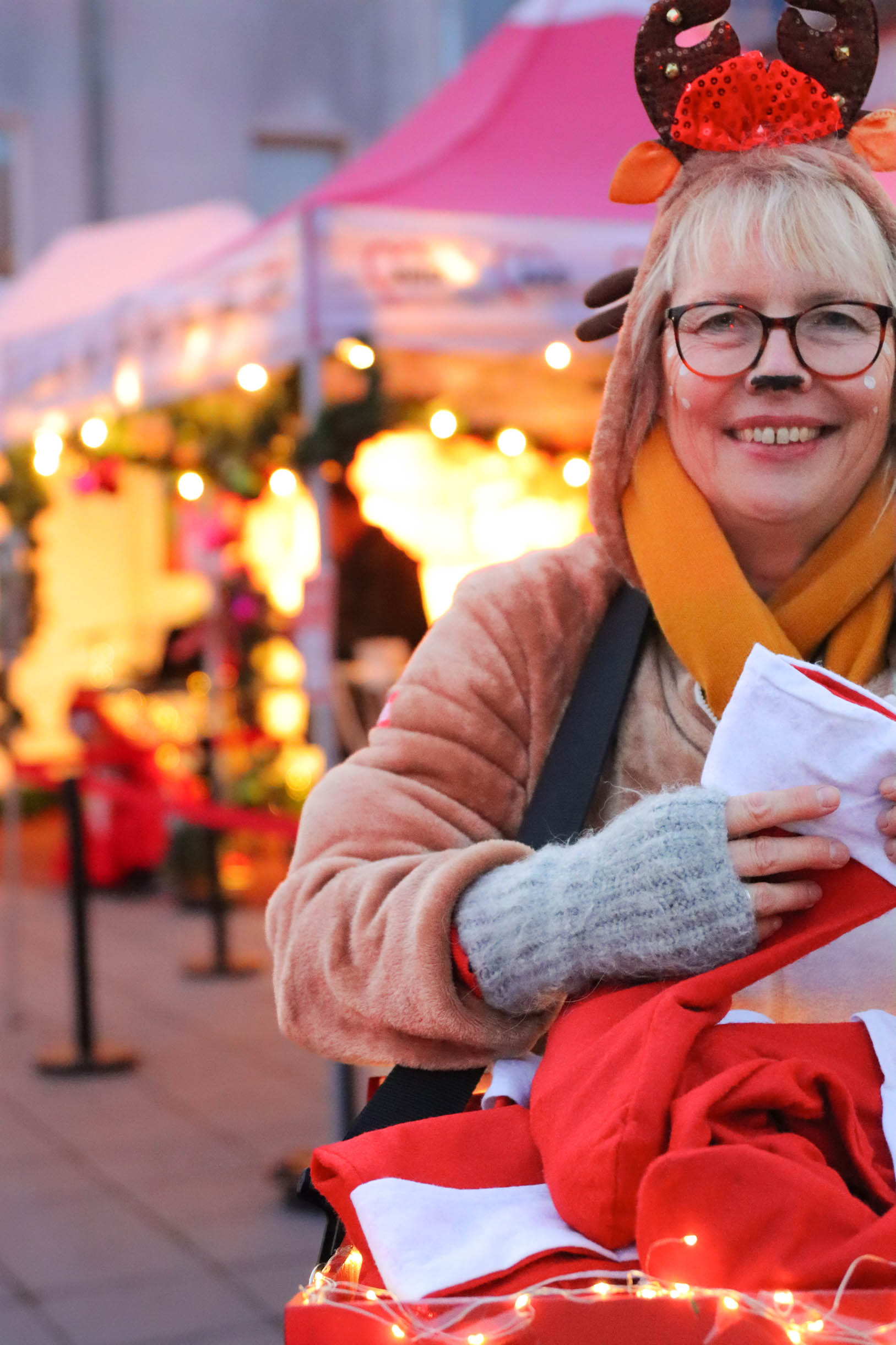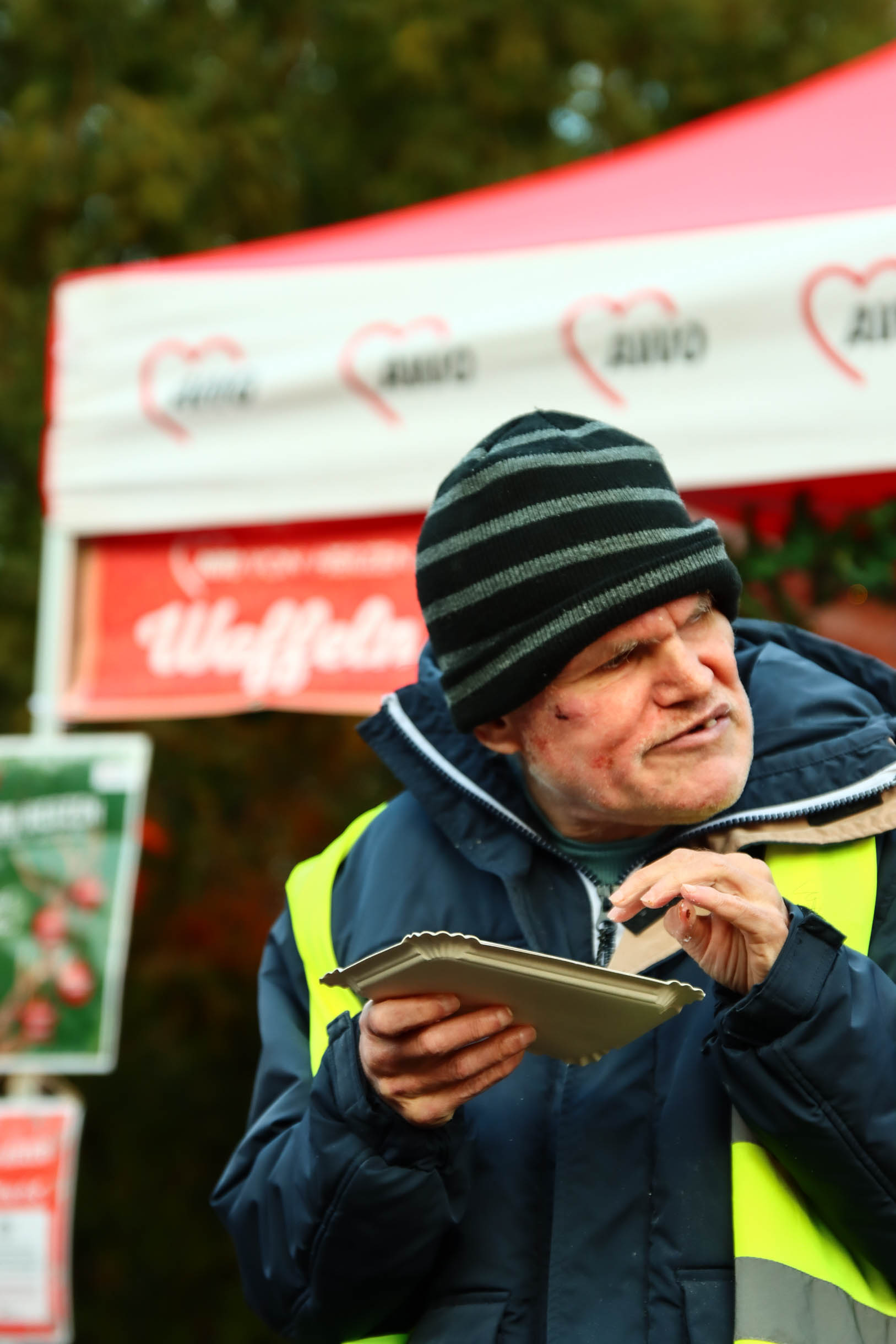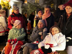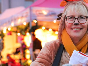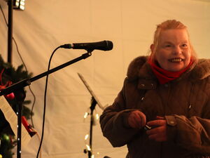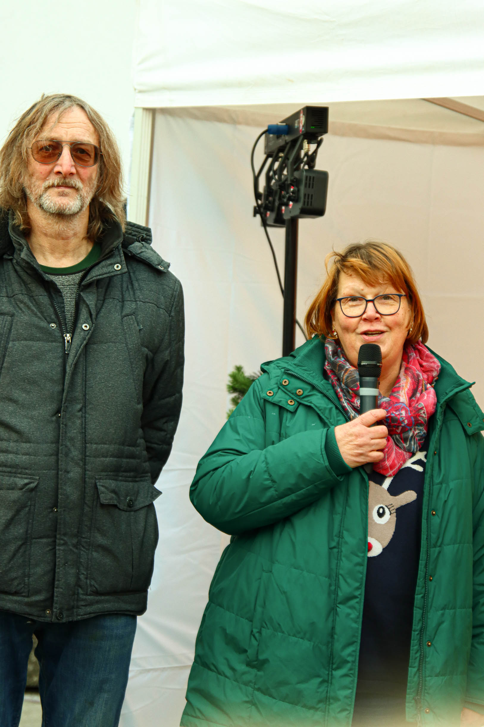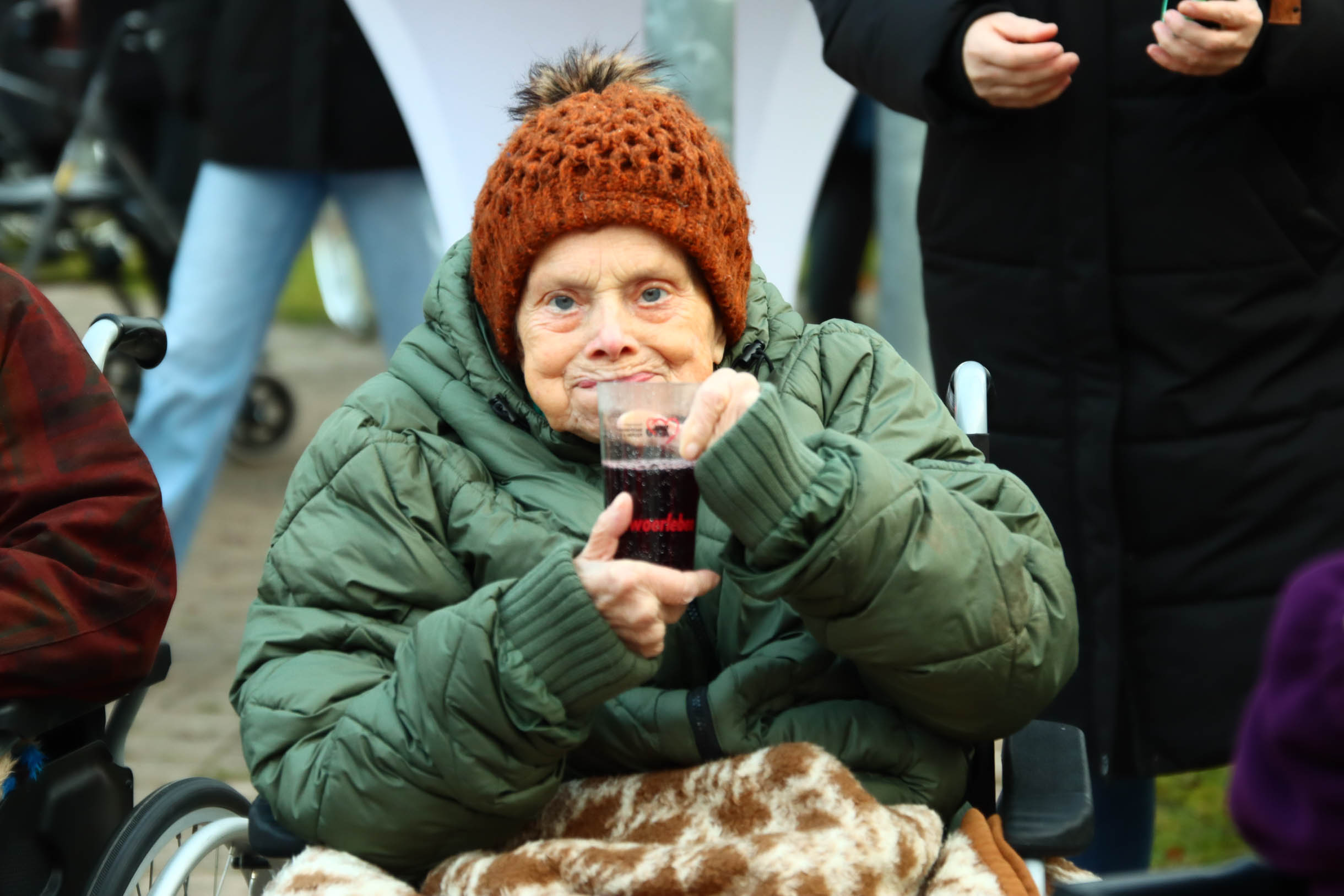 Viele Menschen aus den Einrichtungen in der Region und ihre Angehörige waren gekommen, unter anderem auch Sylvia Bzola. Sie begleitete spontan Zauberfee Lilli auf einer sechsseitigen Mundharmonika. Das Spielen auf dem außergewöhnlichen Musik-Instrument habe ihr Vater ihr beigebracht, erzählte sie. Aufwärmen konnten sich die Besucher*innen an einer Feuerschale, für schöne Weihnachtsgeschenke gab es einen Keramikstand. Auch eine Nachbarskatze „verirrte“ sich auf das Gelände und bat sehr erfolgreich um kleine Leckerlies. Besonders die Kinder waren fasziniert von einem jonglierenden Rentier und Alfreds Bunter Ballonwelt, an der Fotobox von Kevin Pratsch (Photobooth-Fun) standen die Gäste Schlange, um ein lustiges Foto mit Rentier-Geweih oder anderen Utensilien zu schießen. Am Glücksrad gab es tolle Preise zu gewinnen, gespendet von den Mitarbeitenden des Seniorenzentrums.