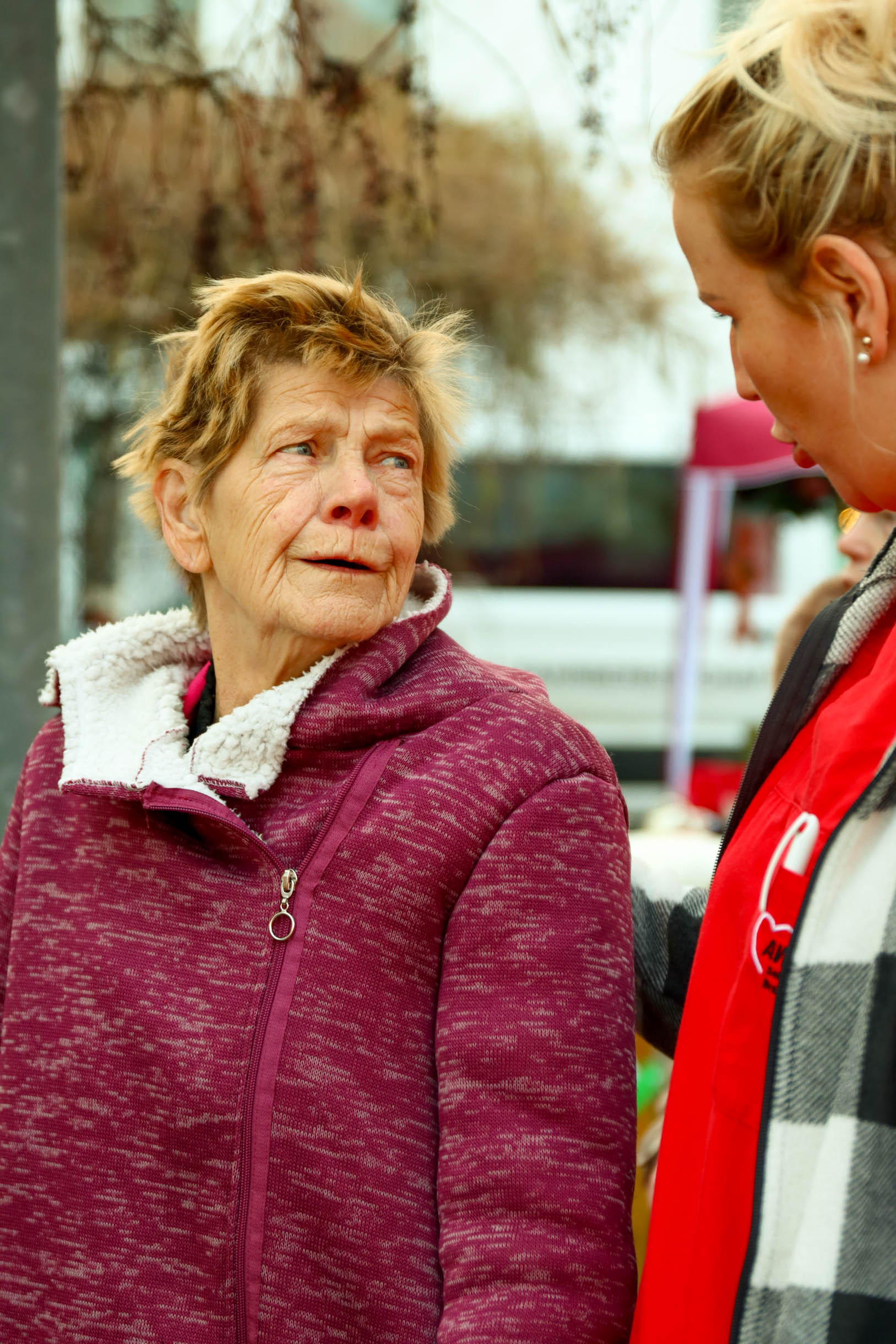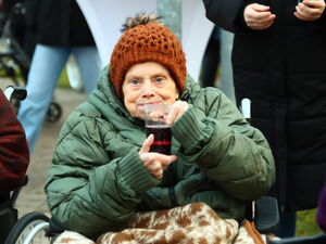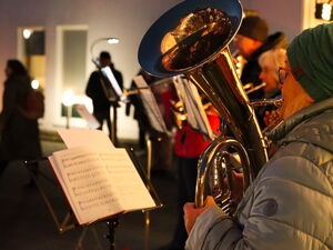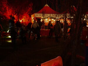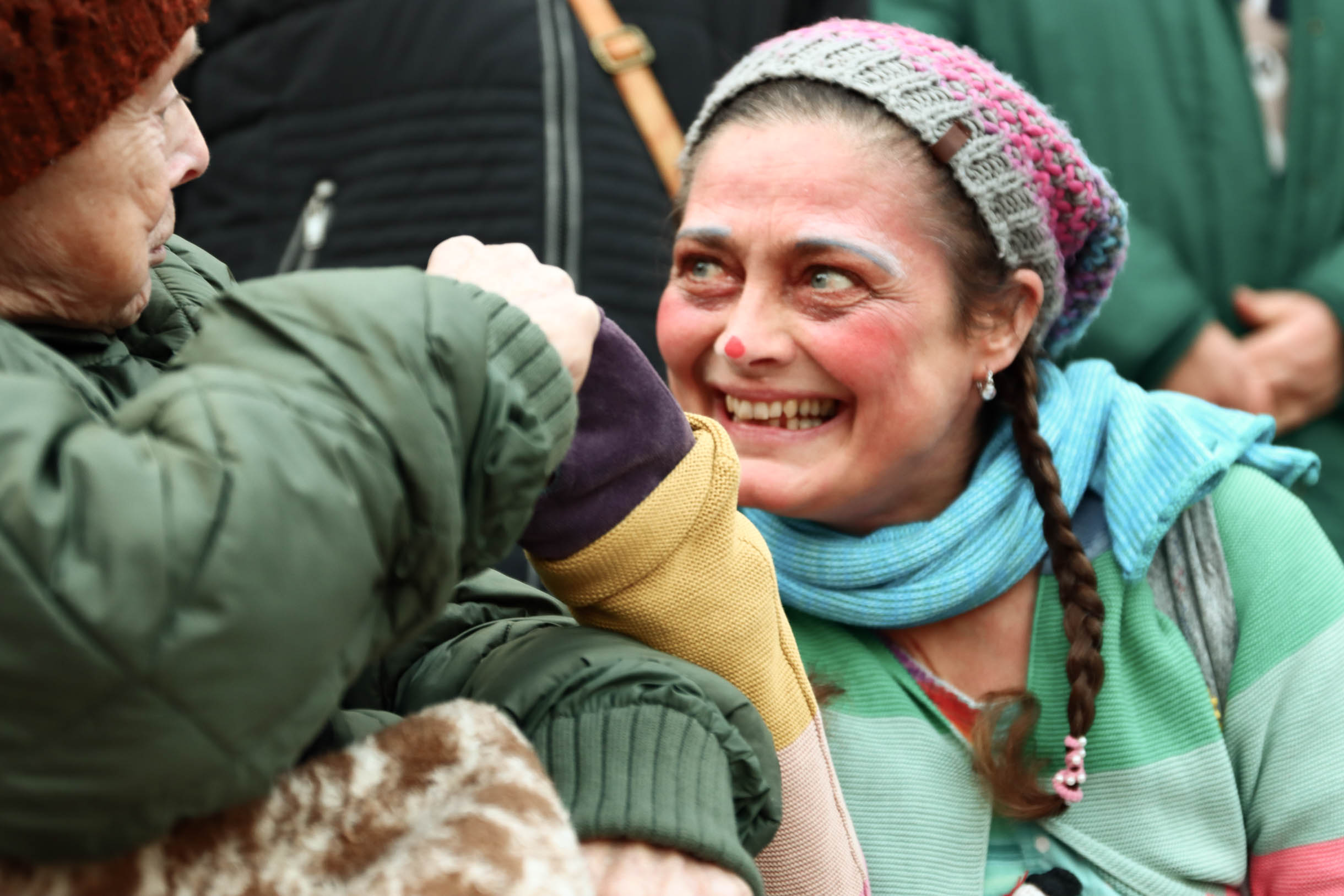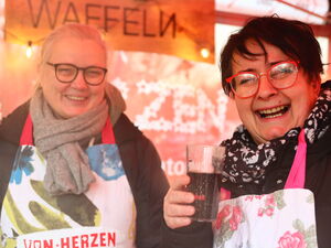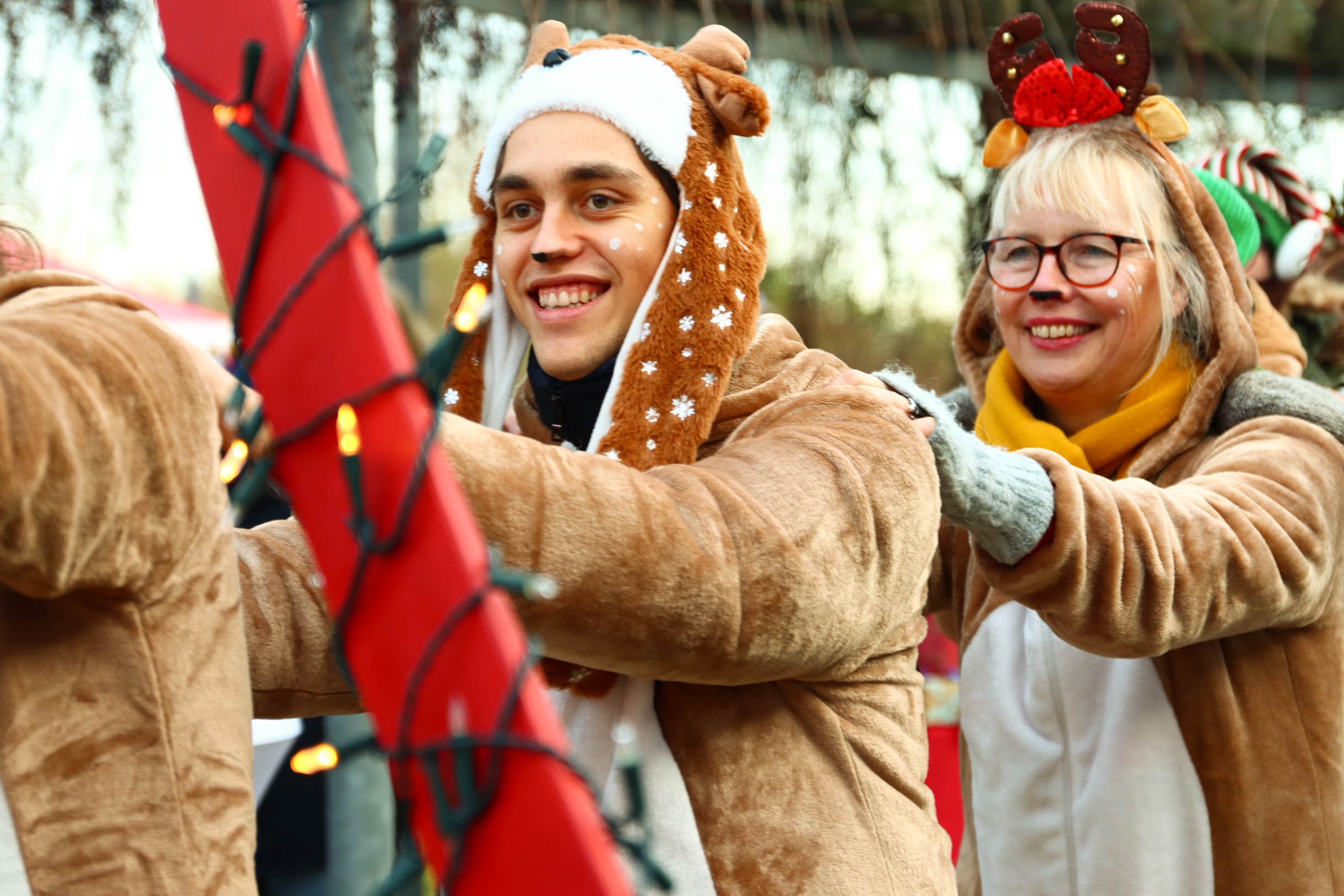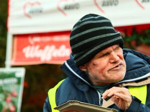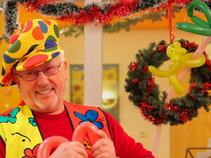 Viele Menschen aus den Einrichtungen in der Region und ihre Angehörige waren gekommen, unter anderem auch Sylvia Bzola. Sie begleitete spontan Zauberfee Lilli auf einer sechsseitigen Mundharmonika. Das Spielen auf dem außergewöhnlichen Musik-Instrument habe ihr Vater ihr beigebracht, erzählte sie. Aufwärmen konnten sich die Besucher*innen an einer Feuerschale, für schöne Weihnachtsgeschenke gab es einen Keramikstand. Auch eine Nachbarskatze „verirrte“ sich auf das Gelände und bat sehr erfolgreich um kleine Leckerlies. Besonders die Kinder waren fasziniert von einem jonglierenden Rentier und Alfreds Bunter Ballonwelt, an der Fotobox von Kevin Pratsch (Photobooth-Fun) standen die Gäste Schlange, um ein lustiges Foto mit Rentier-Geweih oder anderen Utensilien zu schießen. Am Glücksrad gab es tolle Preise zu gewinnen, gespendet von den Mitarbeitenden des Seniorenzentrums.