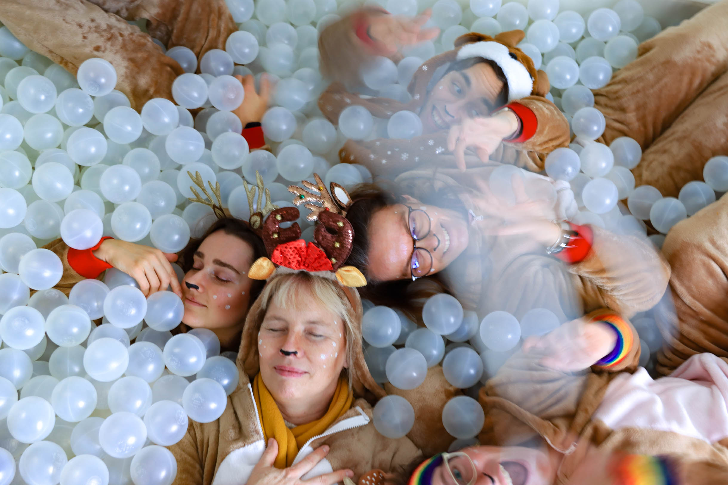 Bevor es richtig losging, mussten die Rentiere allerdings zunächst kurz im benachbarten Bällebad etwas entspannen (siehe Foto). Eröffnet wurde der Nikolausmarkt dann vom Vorstand der Potsdamer Arbeiterwohlfahrt, Angela Schweers und André Saborowski, dem Geschäftsführer der AWO Betreuungsdienste gGmbH, Sven Leist, Gundula Heidenreich und dem Ortsvereinsvorsitzenden Raymond Bohnau, anmoderiert durch Nikola Klusemann. Auch Heike Schulz und Marena Hirsekorn vom Vorstand des AWO Kreisverband Prignitz ließen es sich nicht nehmen und kamen vorbei. Musikalisch begleitet wurde der Markt trotz winterlicher Kälte die ganze Zeit über von Bringfried Löffler (Takt-Zeit) am Klavier, Zauberfee Lilli und den Rentieren.