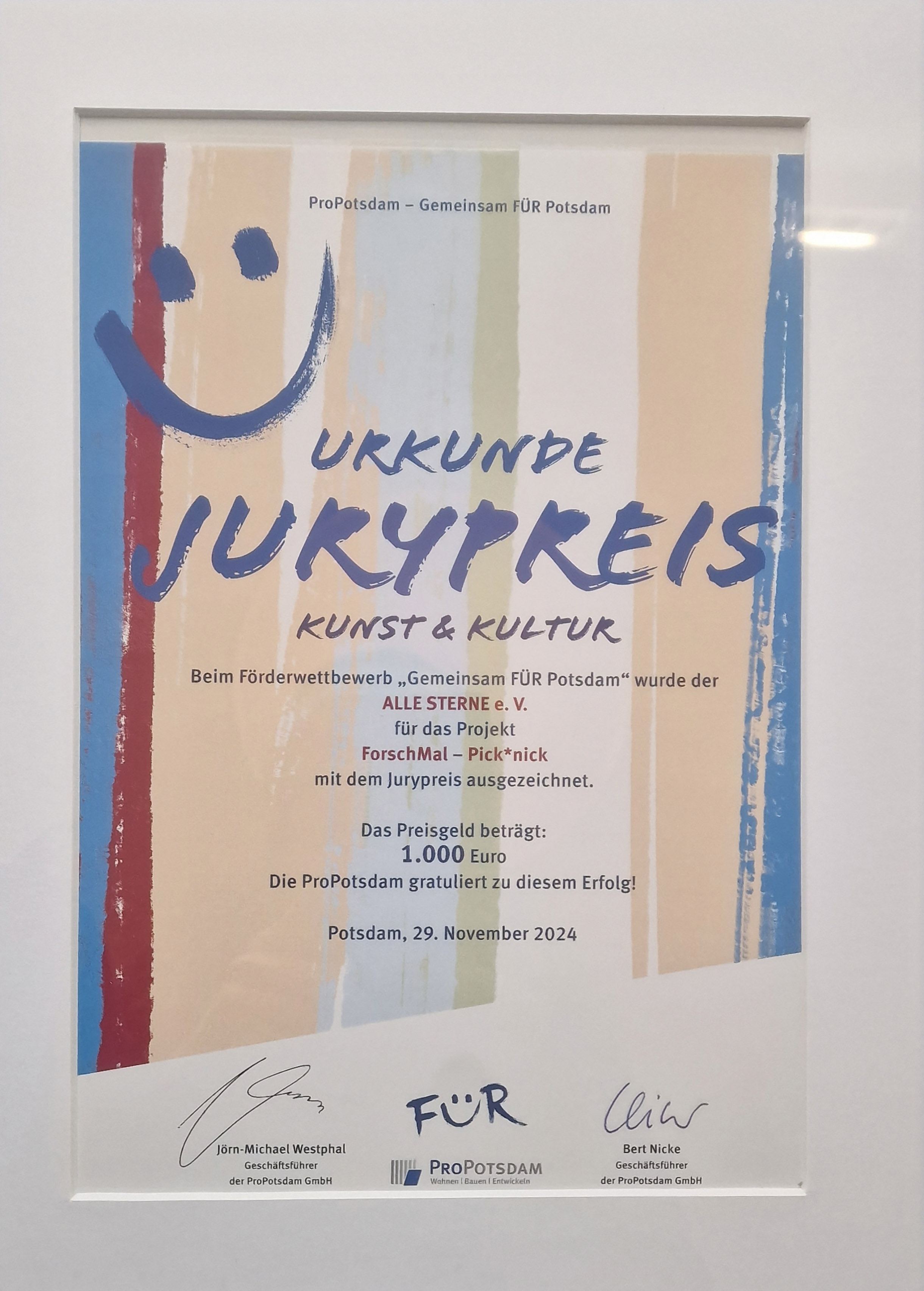Unsere Kooperation, das FuchsForschMal-Theater hat bei der ProPotsdam Projektabstimmung einen Sonderpreis für das Projekt "ForschMal- Pick*nick" erhalten.
