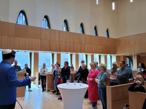 Jan-Niklas Zemmel, Einrichtungsleiter des Synagogenzentrum Potsdam, das von der ZWST betrieben wird, führte am vergangenen Dienstagvormittag zunächst auf das Dach des 2024 in Betrieb genommenen Gebäudes in der Innenstadt der Landeshauptstadt. Von dort oben kann man die Orte markieren, an denen einst bis zur Machtergreifung durch die Nationalsozialisten, jüdisches Leben in Potsdam zu finden war. Das neue Zentrum erzählt vom Wiedererstehen einer jüdischen Gemeinschaft mit Aufnahme von sogenannten Kontingentflüchtlingen aus der ehemaligen Sowjetunion in den 1990er Jahren.