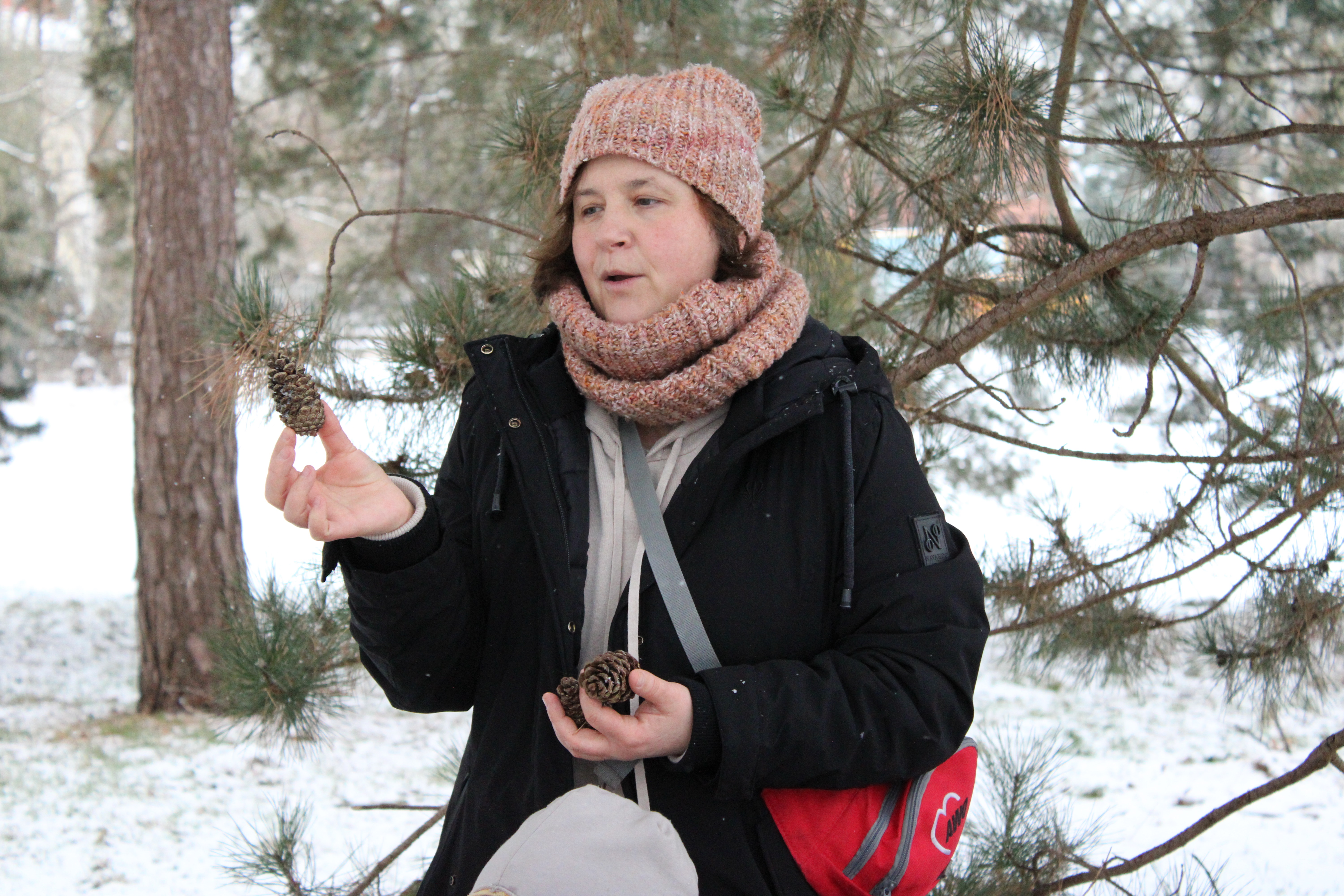 Besonders spannend war unser näherer Blick auf die Kiefernzapfen. Wir nahmen sie in die Hand, untersuchten ihre Form, fühlten ihre raue Textur und fragten uns, woher sie stammten. Kiefernzapfen sind die Fruchtstände von Nadelbäumen und spielen eine wichtige Rolle im Ökosystem, indem sie Samen verbreiten, die neue Bäume wachsen lassen. Einige Kiefernzapfen nahmen wir anschließend mit in die Kita.