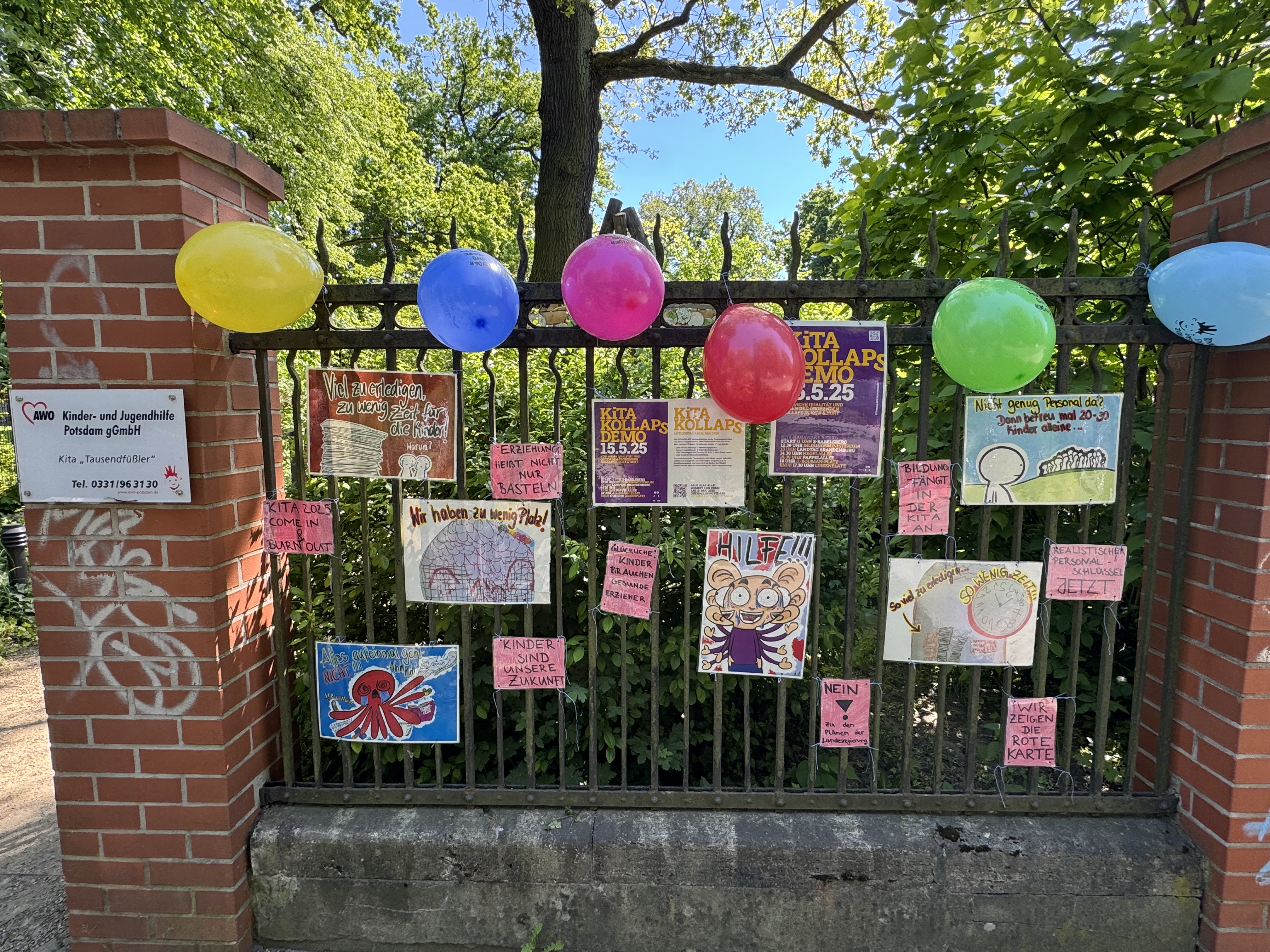 Durch die tatkräftige Unterstützung unserer Eltern können wir am KiTAKOLLAPS teilnehmen, um gemeinsam für die Kinder gute Bildungschancen und für uns bessere Arbeitsbedingungen einzutreten. Das bedeutet uns sehr viel, denn Kinder haben keine Stimme! Wir möchten verhindern, dass der versprochene bessere Betreuungsschlüssel gestrichen wird.