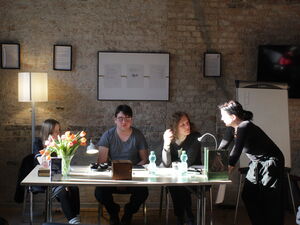 Am 23.04.2026 wurde in den Räumlichkeiten der alten Druckerei das Finale der Schreibwerkstatt des Wohnprojekts Rückhalt abgehalten. Ein halbes Jahr haben sich die jungen Erwachsenen im Rahmen des Projektes im kreativen Schreiben und Selbstausdruck geübt. Bei der abschließenden Vernissage, mit Lesung und Ausstellung, trugen sie eine Auswahl ihrer Texte vor. Die Lesung und auch das Projekt wurde von der Potsdamer Autorin Christine Anlauf begleitet. Die zahlreichen Besucher*innen erfreuten sich an humorvollen Beiträgen und nachdenklichen Texten sowie an Snacks und Getränken in einer anregenden Atmosphäre. Gewählte Texte sind bis Mitte Juni 2026 im Seminarraum der Alten Druckerei zu sehen.