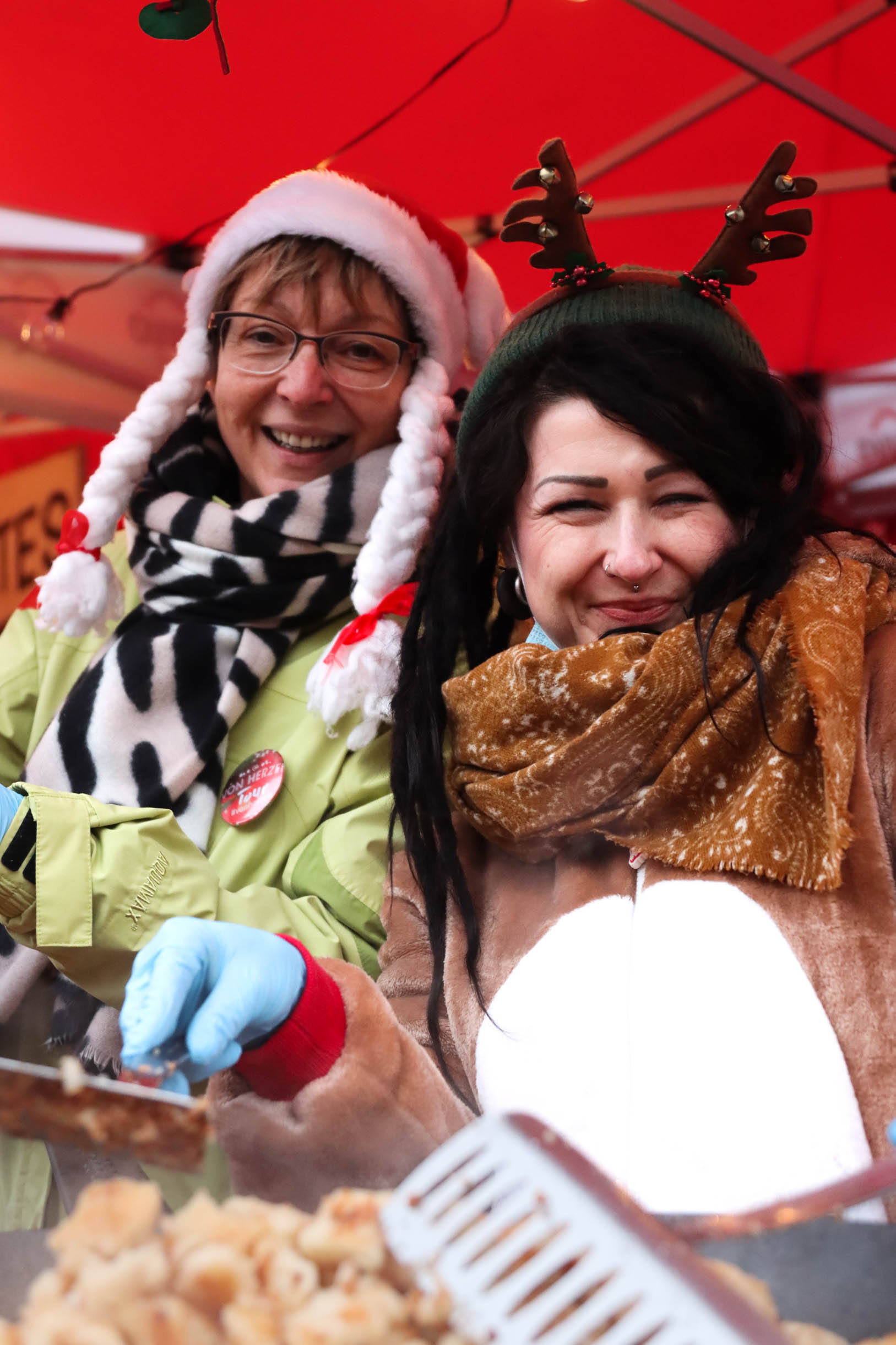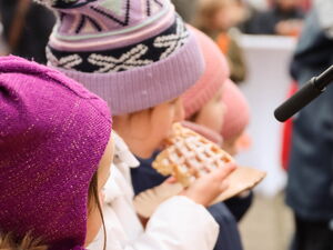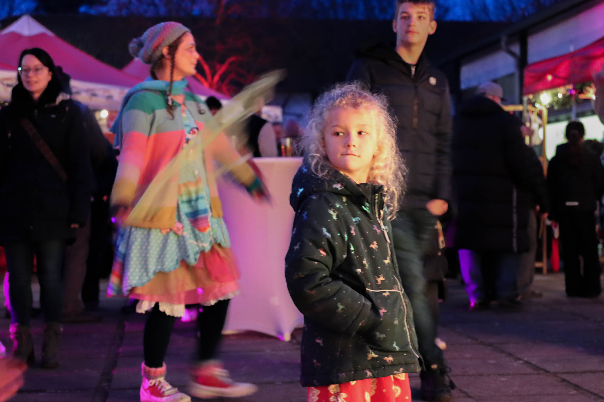 Richtig voll war es zwischenzeitlich auf dem Platz, viele Familien mit ihren Kindern wollten sich das nicht entgehen lassen. Geschätzt 500 Besucher*innen freuten sich über Waffeln, Kaiserschmarrn und reichlich Bratwürste vom Grill. Die Süßspeisen gingen unglaublich schnell weg, sodass nach rund zwei Stunden fast alle Vorräte aufgebraucht waren. Fast alle Kinder hatten irgendwann ein Luftballon-Schwert in der Hand oder eine Krone auf dem Kopf. Vor Alfreds Bunter Ballonwelt in den Räumen des Familienzentrums war die Warteschlange diesmal nämlich besonders lang, so wie auch an der Fotobox von Kevin Pratsch (Photobooth-Fun) und im Kamishibai-Erzähltheater. Großer Andrang herrschte natürlich vor dem fast schon obligatorischen Kerzenziehen draußen vor dem Eingang.