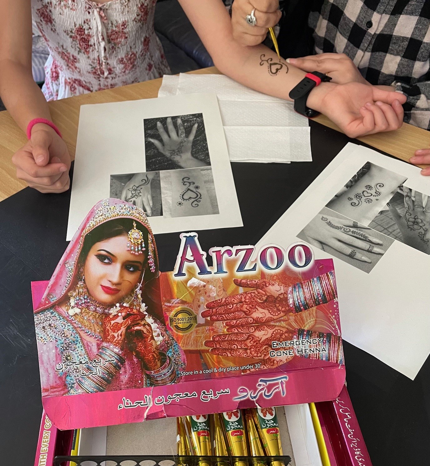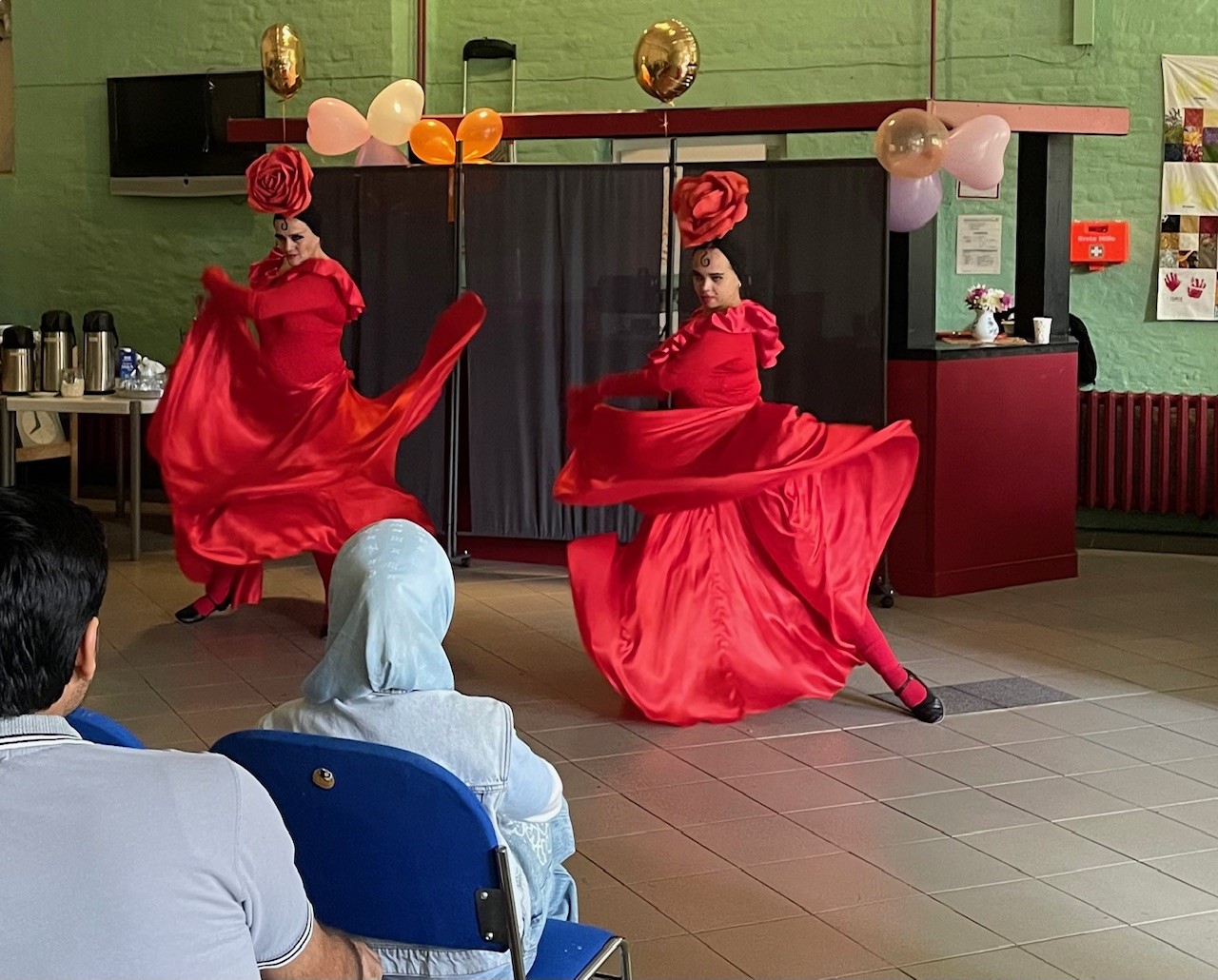 Begeistert waren die Besucher*innen von den Auftritten der Schule der Künste „InteGrazia“ mit einem spanischen und des Ensemble „Assa“ aus Berlin mit einem kaukasischen Tanz. Es gab zahlreiche Bastel-Gelegenheiten und Spiele, Henna-Malerei und afrikanisches Zöpfe flechten für die jungen Gäste. Viele Bewohner*innen kochten traditionelle Gerichte aus ihrer Heimat, dazu gab es Kaiserschmarrn und Quiche sowie Popcorn, Kuchen und Tee aus dem Samowar.