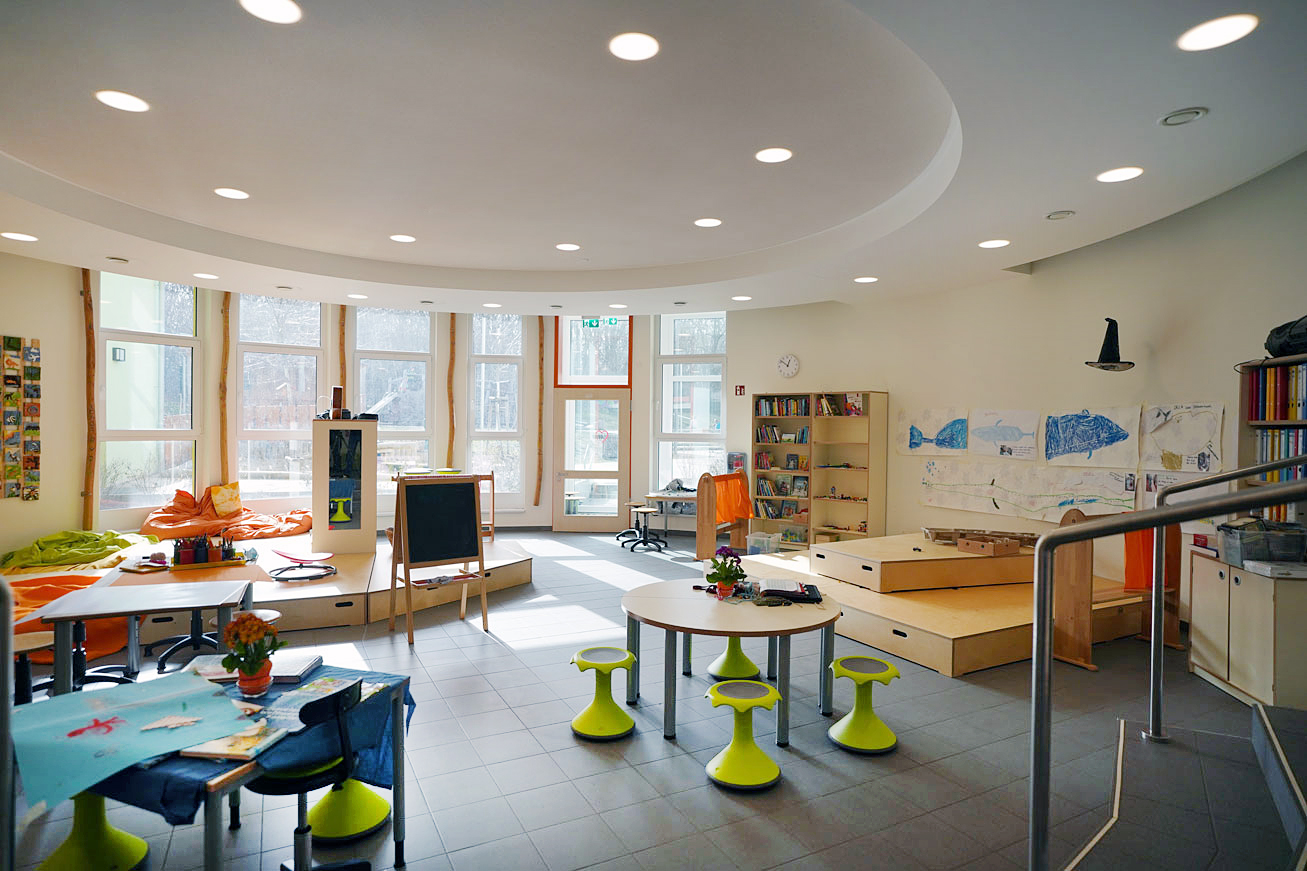 Seit bald 10 Jahren lernen Kinder an der AWO Grundschule „Marie Juchacz“ in Golm in jahrgangsdurchmischten Lerngruppen. Beim Bau der Schule wurden die Bedürfnisse der Kinder in den Fokus gestellt. Daher befinden sich hier nicht nur Lernräume, sondern auch ausreichend Räume, in denen die Kinder sich ausruhen können.