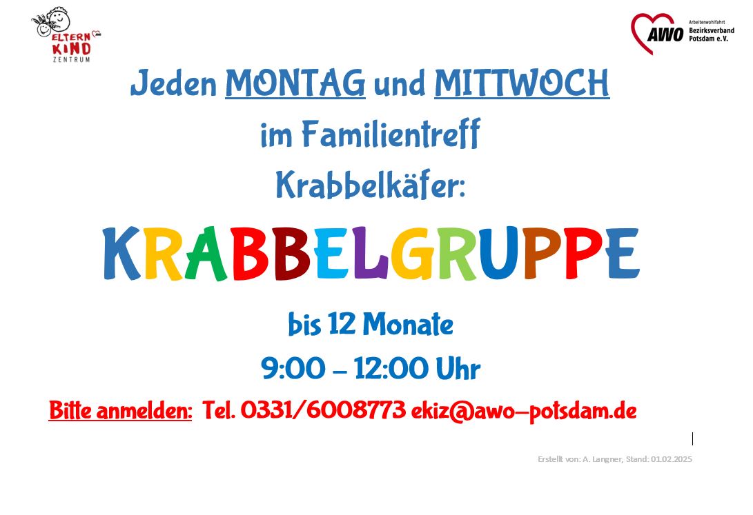 Der AWO Familientreff Krabbelkäfer in Babelsberg ist eine Begegnungsstätte für Groß und Klein. Er vernetzt vorhandene familiengerechte Angebote und Träger vor Ort, um Familien zu unterstützen, zu stärken und zu fördern. Die Angebote orientieren sich an den Bedürfnissen von Eltern und Kindern und werden von diesen mitgestaltet. So bietet der Familientreff Kontaktmöglichkeiten, die Vermittlung vielfältiger Beratungs- und Bildungsangebote sowie die Gelegenheit zur gemeinsamen Freizeitgestaltung.