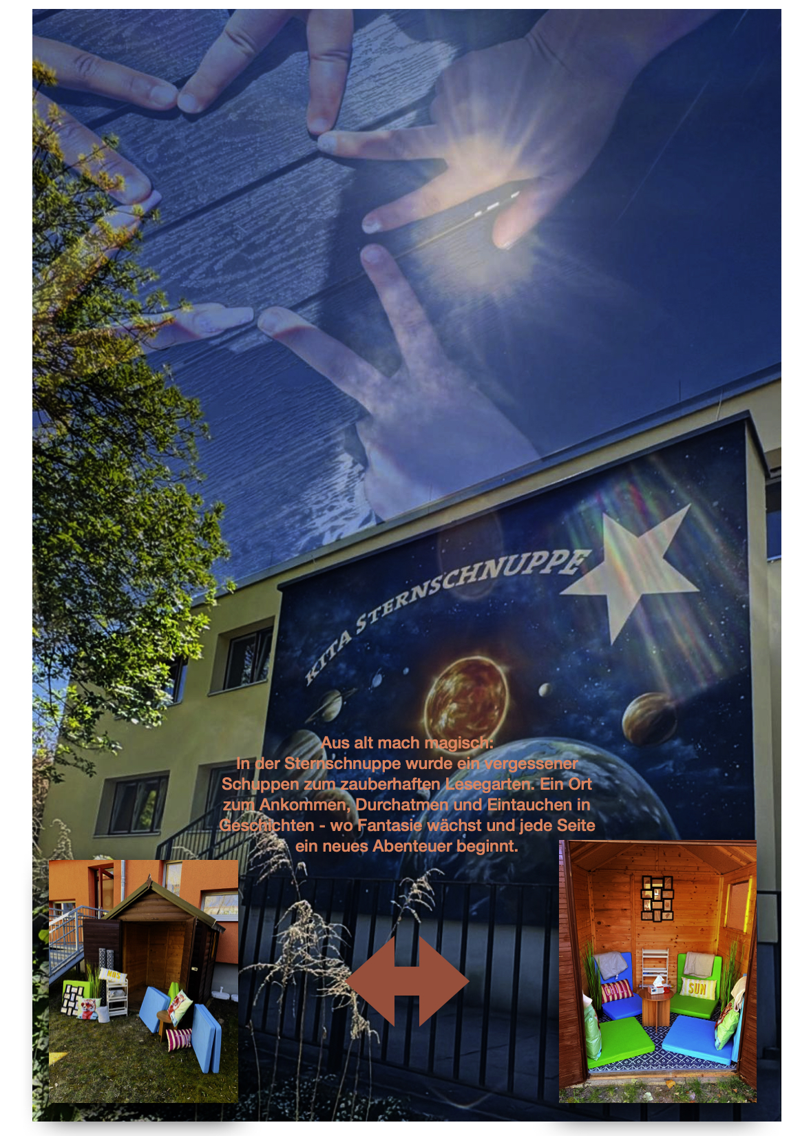 Entdecken Sie die Kita „Sternschnuppe“ in Potsdam! Seit 1995 bietet unsere integrative Kindertagesstätte im Wohngebiet „Am Stern“ Platz für bis zu 210 Kinder im Alter von acht Wochen bis zum Ende der Grundschulzeit. Unser helles, freundliches Haus verbindet liebevolle Betreuung mit den Schwerpunkten Integration, Sprache und Bewegung. Das großzügige Freigelände und die nahegelegenen Wald- und Wohngebiete laden zu vielfältigen Aktivitäten im Freien ein. Bei uns sind alle Kinder herzlich willkommen, um spielerisch zu entdecken, zu lernen und sich wohlzufühlen.
